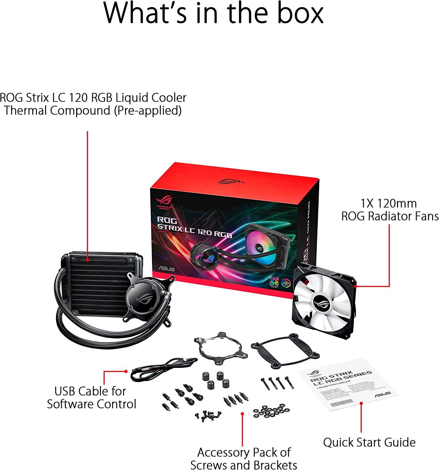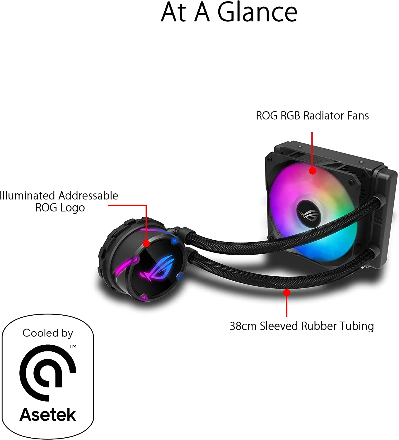 Rog STRIX LC 120 RGB, Cooler CPU All-In-One ROG, avec éclairage ADDRESSABLE RGB, aura Sync, revêtement de pompe ncvm et ventilateur de radiateur ROG