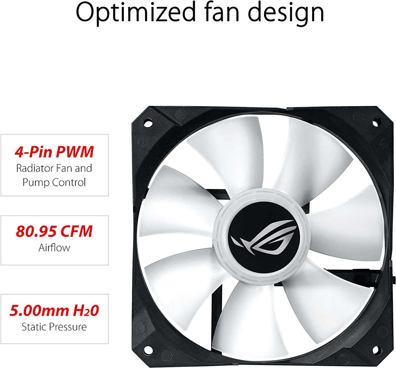 - Ventilateur de radiateur ROG capable d’optimiser la circulation de l’air et la pression statique