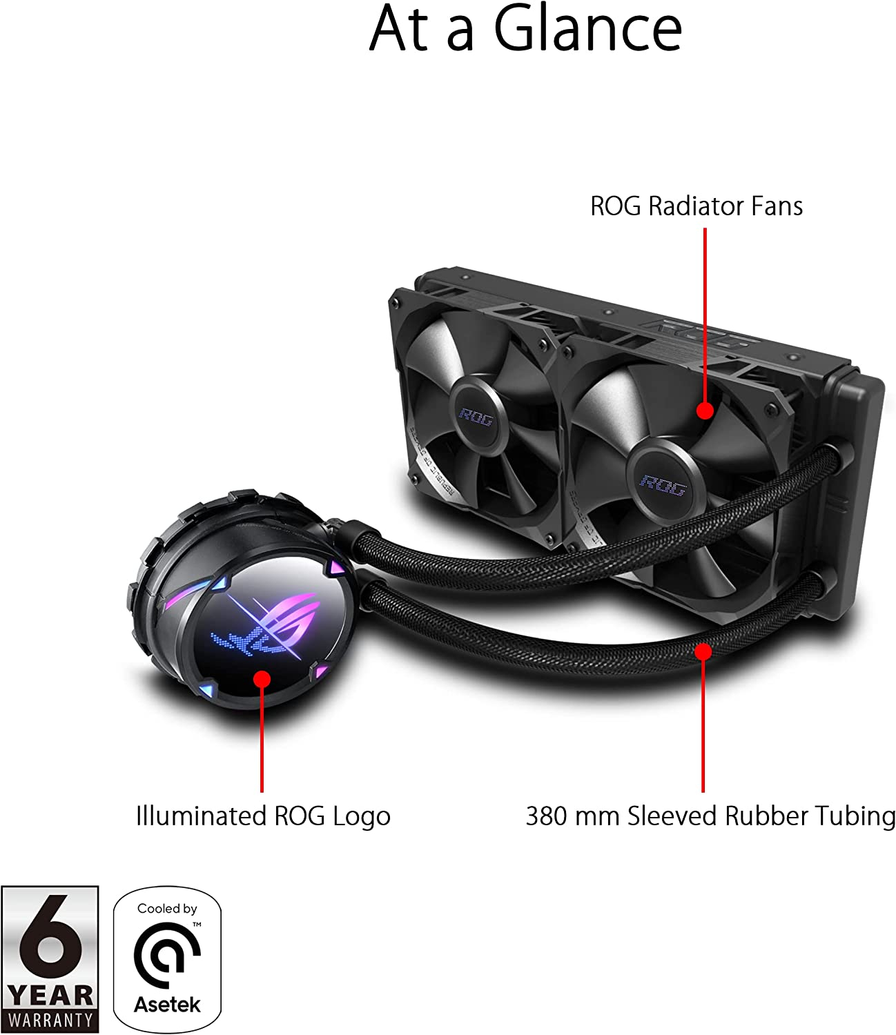 - Deux ventilateurs de radiateur conçus par ROG fournissent un flux d’air et une pression statique optimisés.