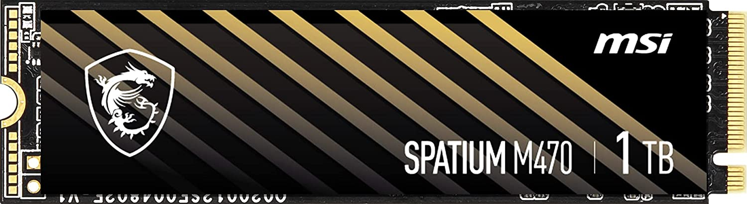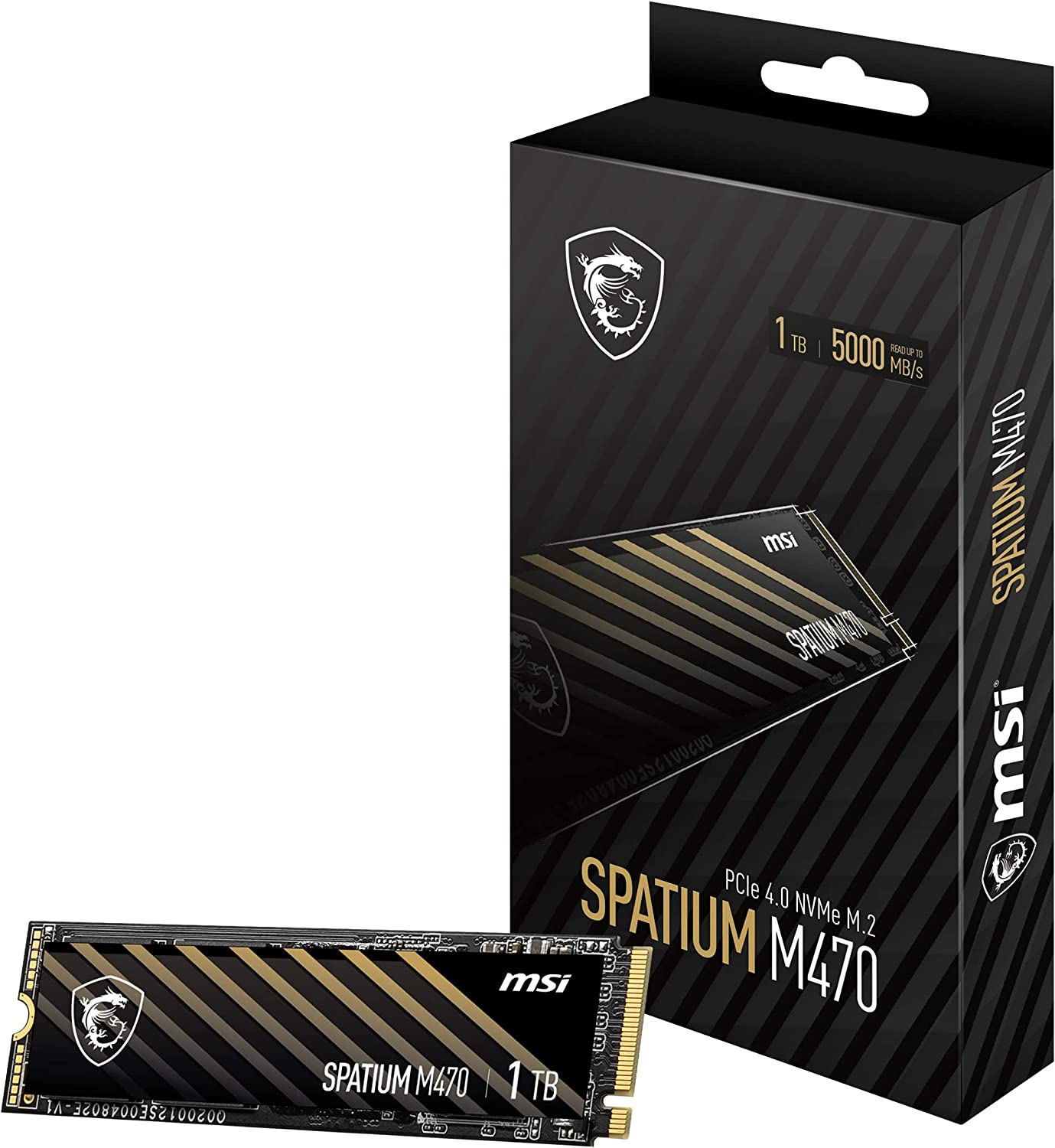 MSI SPATIUM M470 PCIe 4.0 NVMe M.2 SSD 1 to (Gen4 x 4, 1,4, Dimensions 80,0 x 22,0 x 2,15, Taille 1000 Go, Lecture 5000 Mo/s, écriture 4000 Mo/s)