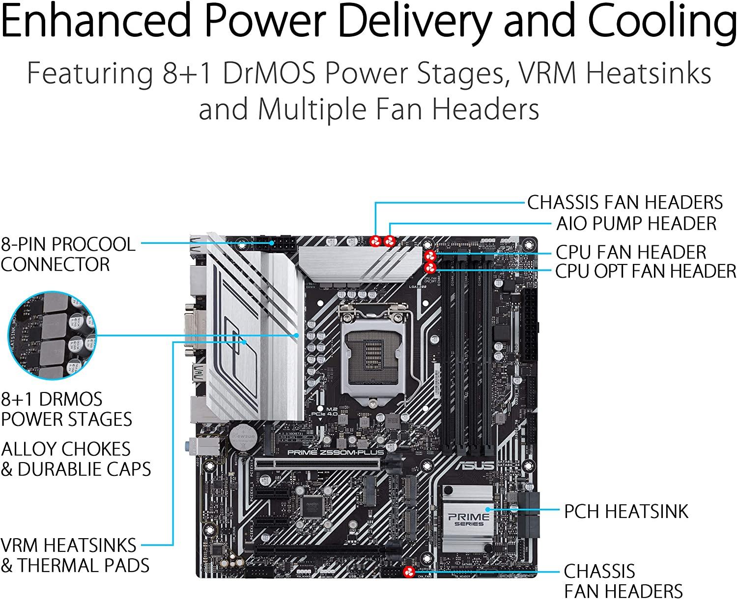 Socket Intel LGA 1700 : Compatible avec les processeurs Intel de 12e génération. Solution d’alimentation améliorée : 14+1 DrMOS, connecteur ProCool à 4+8 broches, bobines en alliage et condensateurs durables pour une alimentation stable. Un refroidissement complet : Grand radiateur VRM, dissipateur thermique du M.2, dissipateur PCH, connecteurs pour ventilateurs hybrides et Fan Xpert 4. ASUS OptiMem II : Acheminement minutieux des tracés et des vias, plus des optimisations de la couche de terre pour préserver l’intégrité du signal et ainsi améliorer l’overclocking de la mémoire. Connectivité nouvelle génération : Intel WiFi 6, DDR4, PCIe 5.0, Ethernet 2,5 Gb, USB 3.2 Gen 2×2 Type-C, USB 3.2 Gen 1 Type-C à l’avant, connecteur Thunderbolt 4