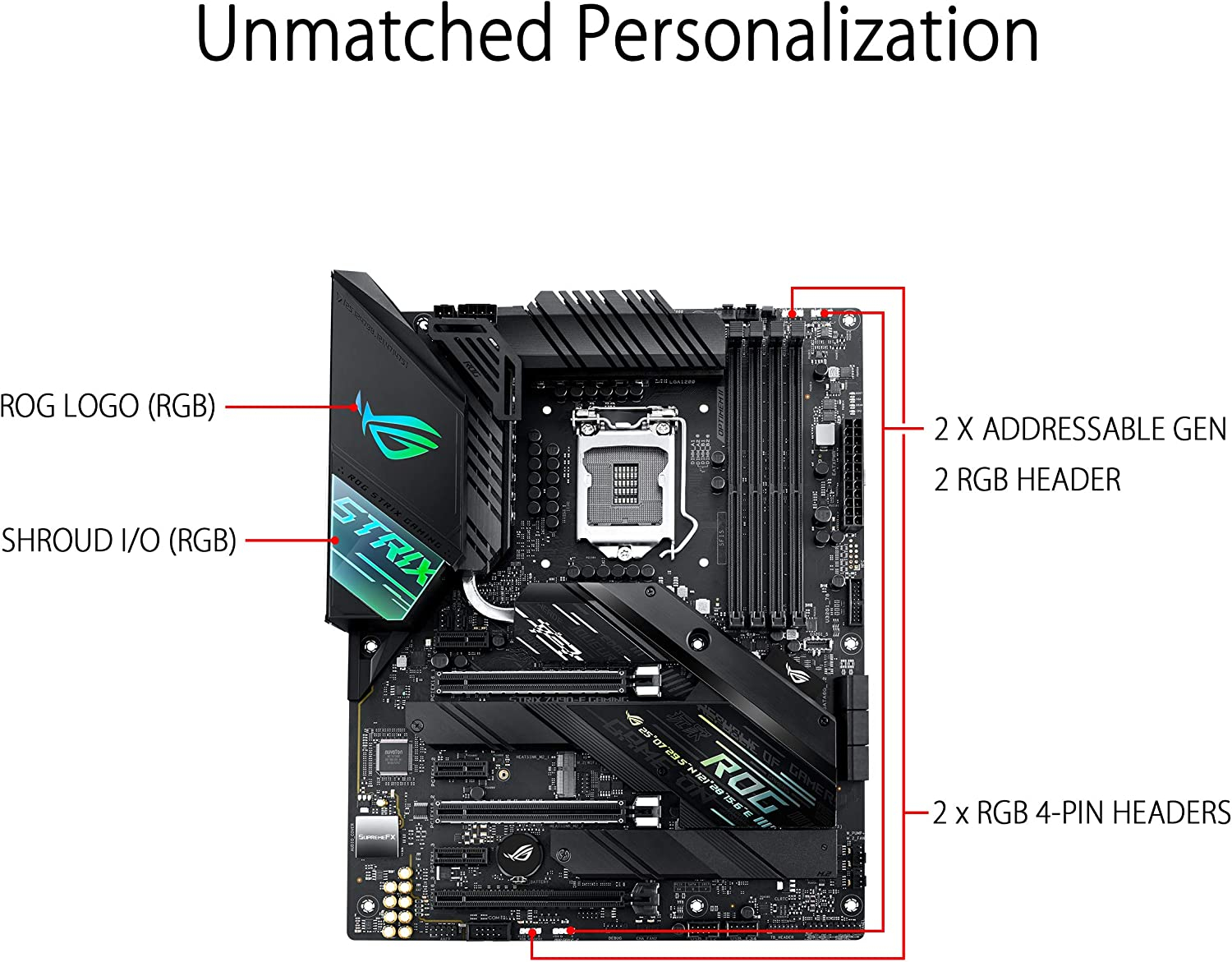 • Personnalisation inimitable : Éclairage AURA Sync RGB exclusif ASUS, avec connecteur RGB et trois connecteurs adressables Gen 2