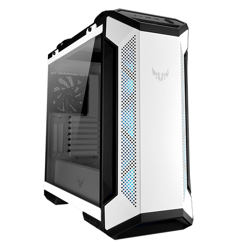 ASUS TUF Gaming GT501 Blanc Boîtier PC gaming ATX/EATX, Panneau en verre trempé, 3 ventilateurs 120mm RGB adressable et Aura