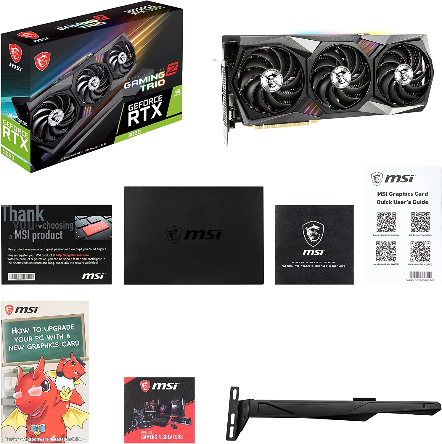 La carte graphique MSI GeForce RTX 3080 GAMING Z TRIO 10G LHR embarque 10 Go de mémoire vidéo de nouvelle génération GDDR6X. Ce modèle bénéficie de fréquences de fonctionnement élevées et d’un système de refroidissement amélioré gage de fiabilité et de performances à long terme.