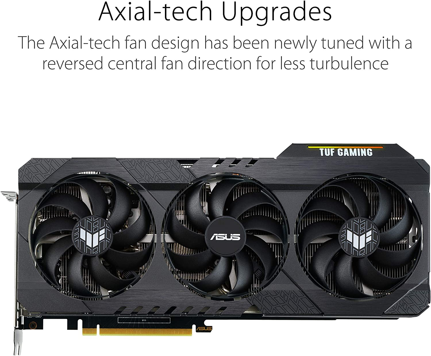 Nouveaux multiprocesseurs de streaming NVIDIA Ampere : Indispensables pour la création du GPU le plus rapide et le plus performant au monde, ils multiplient par deux le débit en FP32 et améliorent l’efficience énergétique du GPU Cœurs RT de deuxième génération : Les nouveaux cœurs RT offrent un rendement multiplié par deux en comparaison avec ceux de la 1e génération, ainsi que des fonctions simultanées de ray tracing et de shading pour des performances inédites Cœurs Tensor de troisième génération : Les nouveaux cœurs Tensor offrent un rendement multiplié par deux avec l’aide d’une matrice dite clairsemée et d’algorithmes avancés d’Intelligence Artificielle tels que la technologie DLSS. Désormais compatibles avec les résolutions 8K, ces cœurs boostent considérablement les performances gaming tout en proposant des technologies d’IA inédites Ventilateur axial : nouvelle technologie avec ventilateur central à direction inversée pour réduire les turbulences Double roulement à billes : durée de vie multipliée par deux en comparaison avec les rouleurs à palier lisse Durabilité renforcée : protection robuste en aluminium et plaque arrière en métal GPU Tweak II : réglages intuitifs des performances, contrôle des températures et suivi de l’état du système