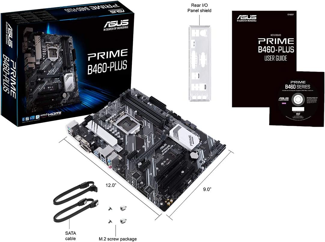 ASUS Prime series motherboards are expertly engineered to unleash the full potential of 10th and 11th Generation Intel Core processors. Boasting a robust power design, comprehensive cooling solutions and intelligent tuning options, PRIME B560-PLUS provides daily users and DIY PC builders a range of performance tuning options via intuitive software and firmware features. Tune It Your Way. Comprehensive controls form the foundation of the ASUS Prime series. The Prime B560 motherboard packs flexible tools to tune every aspect of your system, enabling performance tweaks to perfectly match the way you work, to maximize productivity. UEFI BIOS. The renowned ASUS UEFI BIOS provides everything you need to configure, tweak and tune your system. It offers intelligently simplified options for PC DIY beginners, as well as comprehensive features for seasoned veterans. Advanced Tuning for Serious Tweakers. An intuitive Advanced mode offered via the UEFI lets you take complete control. A built-in search feature makes it easy to find options, and various advanced functions let you intelligently make nuanced adjustments so you can dial in performance just the way you want. Search Function. Quickly and easily find the option or setting you need. ASUS User Profile. Port configuration settings between different BIOS versions or share them with friends. Quick and Simple Setup. EZ mode displays vital settings and stats and also offers guided wizards, drag-and-drop functionality, and one-click application of important settings — all to help you get your rig up and running in no time. Intuitive Graphical Fan Control. Fine-tune individual fan settings simply by dragging a curve with the mouse. EZ XMP. Improve DRAM performance with one click. Aura On/Off Mode (Stealth). Easily enable or disable Aura RGB lighting or every onboard LED, for a subdued aesthetic touch. Cool to the Core. Prime B560 series is engineered with multiple onboard heatsinks and an array of hybrid fan headers to ensure your rig stays cool and stable under intense workloads. M.2 Heatsink. An M.2 heatsink takes care of the two M.2 slots, warding off throttling that can occur with M.2 storage during sustained transfers. The heatsink is held in place by captive screws and can be moved to other M.2 slot. VRM Heatsinks and Thermal Pads. Two massive VRM heatsinks and thermal pads improve heat transfer from the MOSFETs and chokes for better cooling performance. Cooler by Design. Prime B560 series features comprehensive cooling controls that are configurable via Fan Xpert 2+ software or via the UEFI BIOS. Multiple Temperature Sources. Each header can dynamically reference three thermal sensors. Fan Xpert 2+ allows you to map the temperature of supported ASUS graphics cards to optimize cooling for GPU- and CPU-intensive tasks. Smart Protection. A dedicated integrated circuit protects each fan header from overheating and overcurrent. 4-Pin PWM/DC Fan. Each onboard header supports auto-detection of PWM or DC fans. Build on a Solid Foundation. Prime B560 series is built to handle the additional cores and increased bandwidth of 11th Generation Intel Core processors. ASUS B560 motherboards provide all the fundamentals to boost daily productivity, so your system will be ready for action with stable power, intuitive cooling and flexible transfer options. ASUS OptiMem. Revisions to the motherboard’s trace routing provide the latest Intel processors with unrestricted access to memory bandwidth. ASUS OptiMem technology carefully maps memory signal pathways across different PCB layers to reduce vias and adds shielding zones that significantly reduce crosstalk. ASUS OptiMem benefits: – Improved memory stability and compatibility. – Allows lower memory latencies at equivalent voltages. – Improved memory frequency margin. Dual M.2 slots (up to 64 Gbps). PRIME B560-PLUS offers a total of two M.2 slots, with one slot supporting data-transfer speeds of up to 64 Gbps via PCI Express 4.0, enabling quicker boot-up and app load times with OS or application drives. PCIe 4.0 Slot. ASUS B560 motherboards are designed specifically for 11th Generation Intel Core CPUs and offer PCIe 4.0 connectivity for the latest GPUs. The wide bandwidth and superfast transmission speeds allow you to create feature-rich builds that can handle high loads effortlessly. USB 3.2 Gen 2 Type-A. Numerous USB ports support high-end rigs loaded with peripherals, including a rear-panel USB Type-A connectors with fast USB 3.2 Gen 2 connectivity for compatible cases. Thunderbolt 4 header Support. Prime B560-PLUS features Thunderbolt 4 support via an on-board header. With the latest Intel-certified ASUS TunderboltEX 4 add-on card, it can enable bi-directional speeds of up to 40 Gbps on a single cable. Additionally, this card has a daisy-chain function for multi-screen connection and supports up to an 8K resolution display. It can also provide up to 100 watts of power to fast-charge devices. Small Details Make a Big Difference. Prime B560 series adds the nuanced details that improve every experience, from exclusive codecs that provide pristine audio quality to intuitive RGB lighting controls that let you customize your system to create a uniquely personal look. Outstanding Audio. Combined onboard features deliver elevated audio. Intelligent design and premium hardware create audio quality unlike anything you’ve ever experienced. Audio Shielding. Separates analog/digital signal domains, significantly reducing multi-lateral interference. Separate Layer for Left and Right Tracks. Ensures minimal crosstalk between audio paths. Premium Japanese Capacitors. Premium parts provide an immersive sound signature, with exceptional fidelity. Aura Sync. Outshine the Competition. A well-tuned enthusiast system deserves a matching aesthetic. ASUS Aura offers full RGB lighting control with a variety of functional presets for the strips connected to the onboard RGB headers — and it can all be synced with an ever-