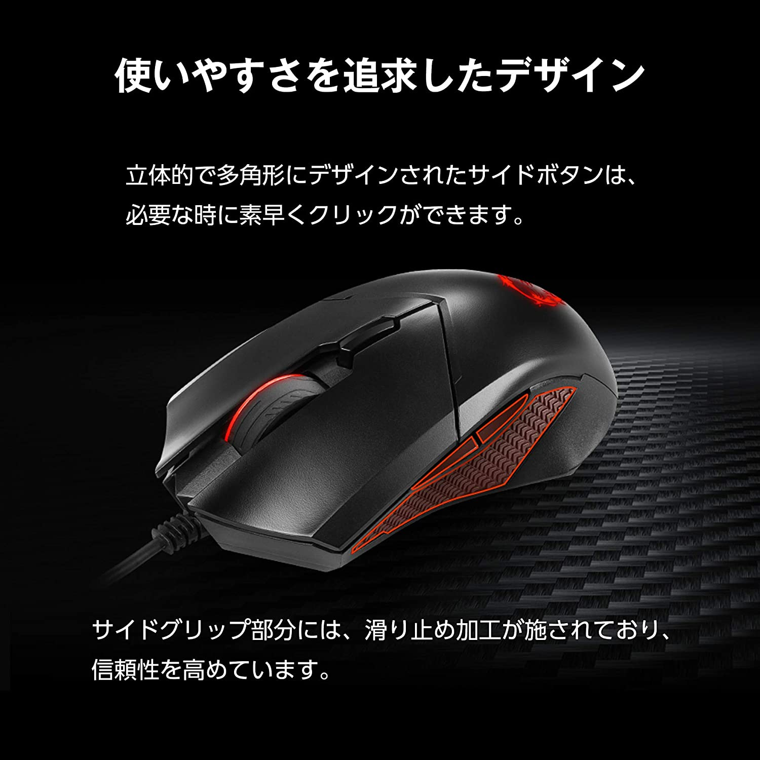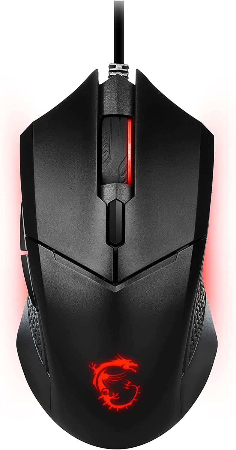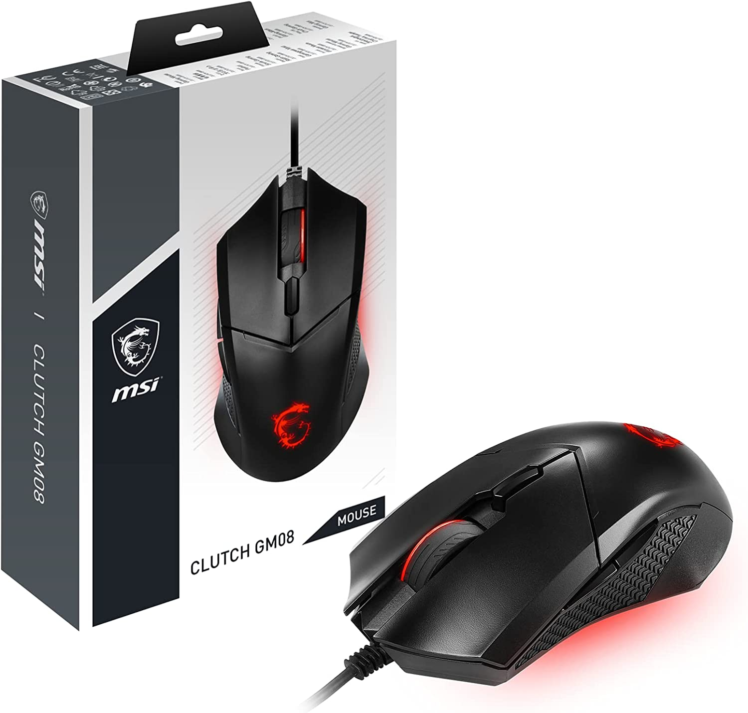 MSI Clutch GM08 USB Souris de jeu optique, 4200 DPI, Conception ergonomique, Surface antidérapante, Système de poids réglable, Connecteur plaqué or