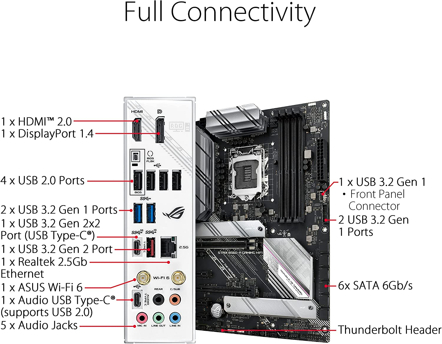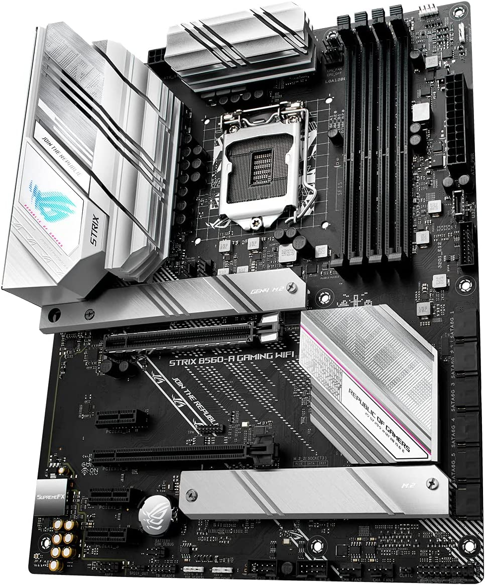 Carte mère Intel B560 LGA 1200 au format micro ATX avec PCIe 4.0, 8+2 phases d’alimentation unifiées, Two-Way AI Noise Cancelation, Wi-Fi 6 (802.11ax), Intel 2.5 Gb Ethernet, deux slots M.2 dont un slot avec son propre radiateur, port USB 3.2 Gen 2×2 USB Type-C, SATA et éclairage Aura Sync