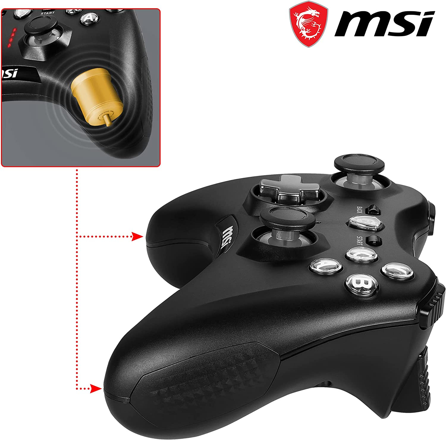 “La MSI Force GC20 V2 est une manette de jeu filaire pour PC équipée d’un câble micro-USB vers USB 2.0 amovible de 2 mètres pour du Gaming non-stop. La Force GC20 V2 est dotée de joysticks analogiques améliorés qui garantissent une réactivité plus fluide dans le jeu. Le contrôleur comprend également deux gâchettes de précision qui offrent chacunes 256 niveaux d’entrée graduée, ce qui le rend idéal pour les jeux de pilotage & de simulation. L’interface principale utilise des boutons durables avec une durée de vie nominale de 2 millions de clics chacun et comprends des boutons de pavé directionnel magnétiques amovibles & interchangeables en forme de croix standard ou heptagonale (idéale pour les jeux de combat). Les deux moteurs de vibration améliorent considérablement l’immersion globale dans le jeu grâce à un retour haptique (rumble) pour offrir un gameplay plus viscéral. Le caoutchouc texturé sur les côtés du contrôleur empêche les glissements lors de longues sessions de gaming. Grâce à MSI APP Player, développé en coopération avec BlueStacks, les joueurs peuvent jouer à des jeux mobiles sur leur PC avec tous les avantages que cela comporte: taux FPS plus élevés, meilleure résolution d’écran & choix de contrôleur.”
