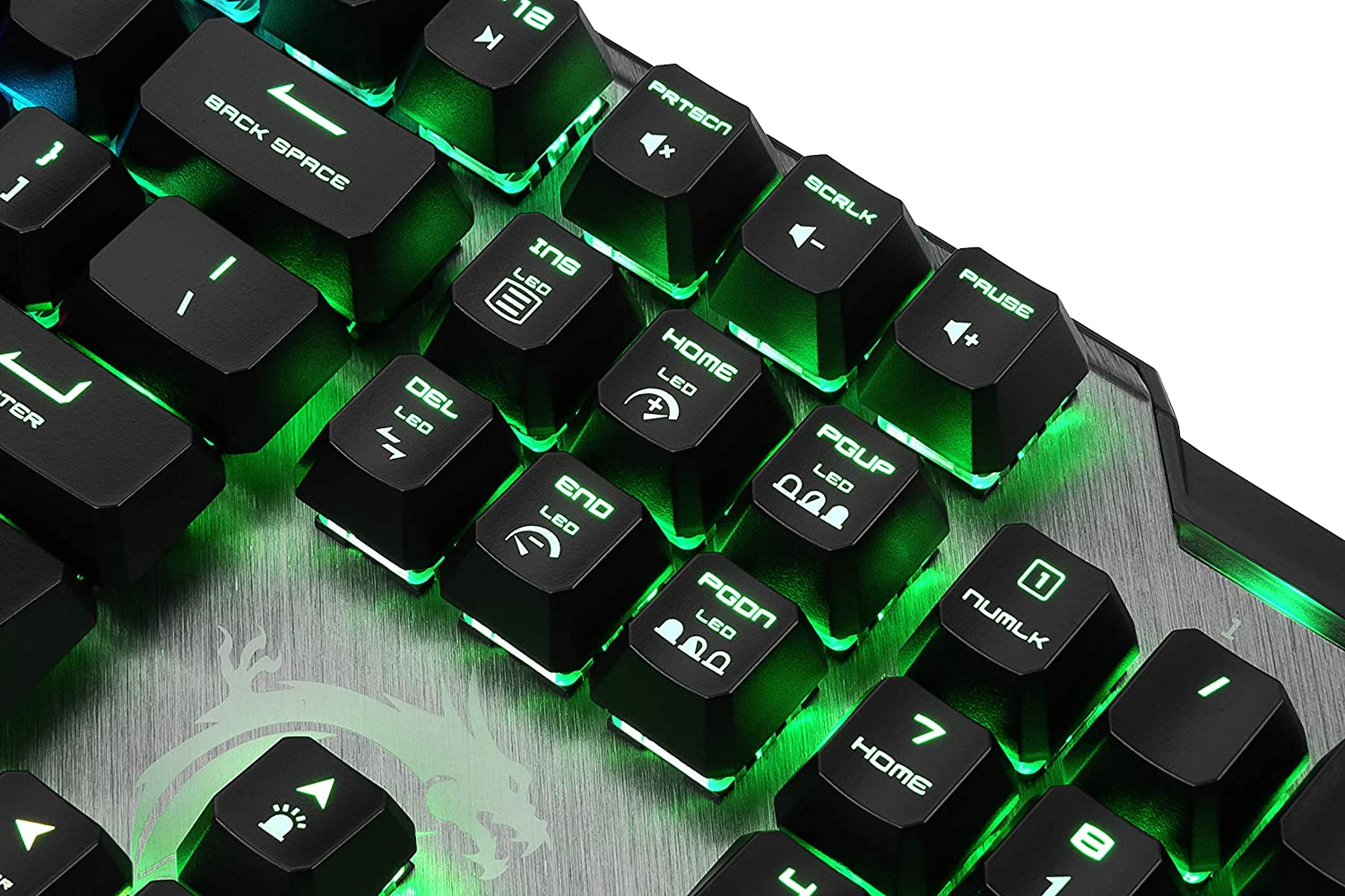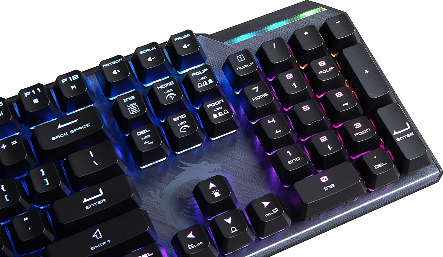 SWITCHES MÉCANIQUES BOX WHITE – PRÉCISION ET ENDURANCE. Les switches mécaniques Box White sont de type clicky et proposent donc un clic très sonore. Ils sont pensés pour les gamers à la recherche d’un clavier mécanique extrêmement précis dont les touches n’ont pas besoin d’une grosse pression pour fonctionner. DESIGN ERGONOMIQUE. Ce clavier a été pensé pour offrir un confort de jeu optimal. Son design ergonomique permet en effet un positionnement naturel des mains et des poignets afin de réduire les sensations de crispation et les douleurs qui peuvent en découler après une utilisation prolongée. UN RÉTROÉCLAIRAGE PERSONNALISABLE. Le claviers Vigor GK50 Elite proposent un rétroéclairage LED RGB vous permettant de personnaliser ses touches en les habillant de millions de teintes de couleurs et de plusieurs effets de lumière. Vous pourrez contrôler le rétroéclairage avec le logiciel exclusif MSI Dragon Center. ROBUSTESSE ET ÉLÉGANCE. La plaque supérieure en métal brossé et les touches au revêtement mat font des claviers Vigor GK50 Elite des modèles robustes sur lesquels n’apparaîtront pas les traces de doigts.. La forme octogonale unique des touches donne au clavier un aspect contemporain et élégant. DES RACCOURCIS POUR DES CONTRÔLES PLUS RAPIDES. Des touches de raccourcis pratiques vous permettent de rapidement et facilement modifier la vitesse, la direction ou encore le mode d’utilisation.. Sur la partie haute du clavier, on retrouve des raccourcis pour modifier le volume audio, la lecture des fichiers multimédia et pour activer Afterburner*.. * Veuillez tout d’abord télécharger le logiciel Afterburner. UN CLAVIER QUI NE BOUGE PAS. Les claviers Vigor GK50 Elite disposent du Gaming Base situé sous la barre d’espace et qui améliore leur robustesse ainsi que leur adhérence. DRAGON CENTER. Profitez de réglages détaillés pour personnaliser votre style grâce à la dernière version de Dragon Center. ACCESSOIRES. Les claviers Vigor GK50 Elite sont accompagnés d’accessoires qui vous seront d’une grande utilité : une pince pour retirer les touches et deux touches supplémentaires de forme arrondie (1 touche CTRL gauche et 1 touche ALT droite). La forme arrondie de ces touches vous assure une frappe plus facile, ce qui peut grandement vous servir pendant votre jeu si vous appuyez souvent sur les touches ALT et CTRL.