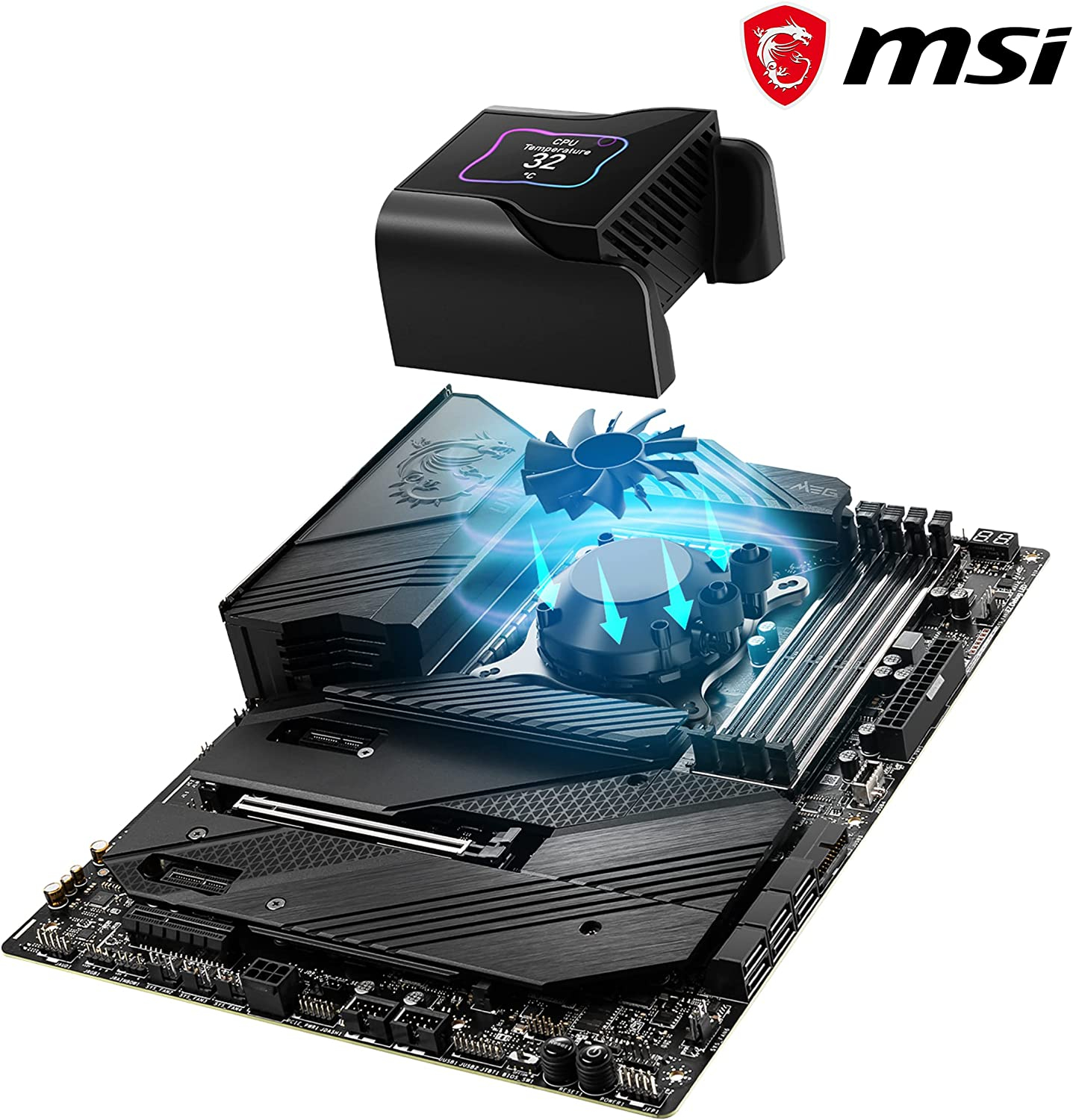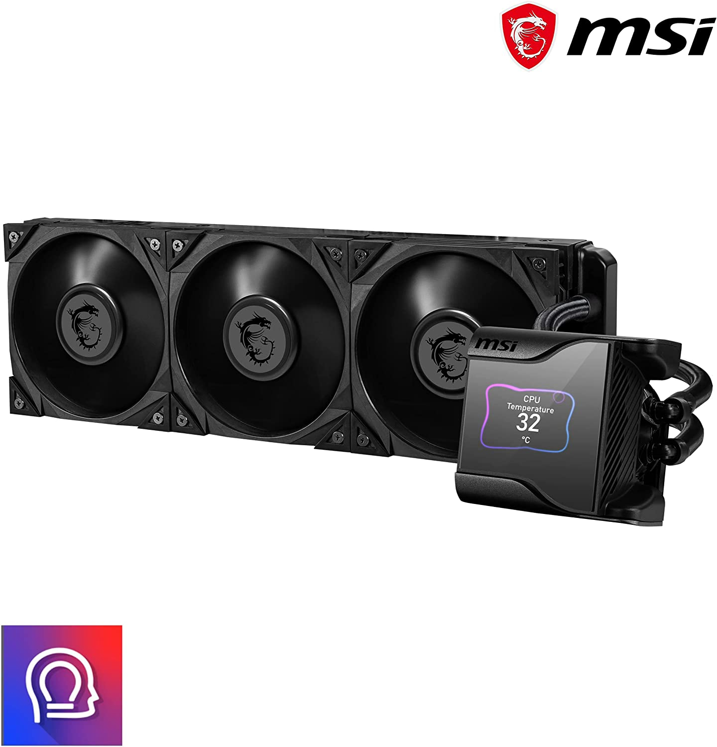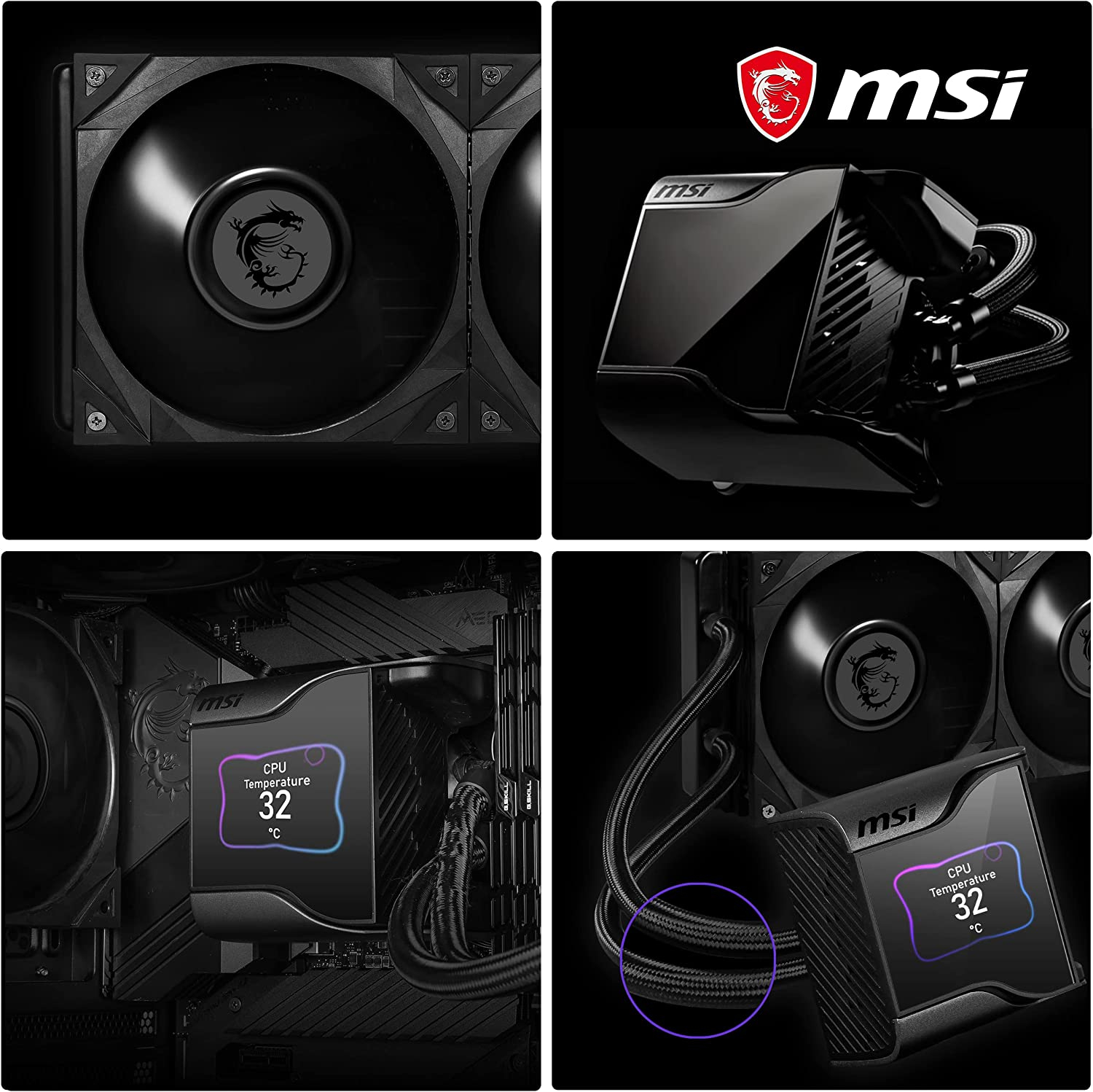Les refroidisseurs liquides MEG CORELIQUID Série S sont la solution thermique tout-en-un élite de MSI pour le refroidissement du processeur avec des performances et un silence sans précédent et une personnalisation à couper le souffle. Le bloc de pompe à trois couches est couronné d’un écran IPS de 2.4 pouces (320×240 pixels) pour des images, des vidéos et une surveillance du système en temps réel totalement personnalisables. Un ventilateur dissimulé à évacuation descendante de 60mm permet de dissiper la chaleur du VRM, des emplacements SSD M.2 et des composants environnants lors de fortes charges thermiques. L’ancrage du bloc se fait via une pompe Asetek de 7ème génération (PWM) avec une plaque froide circulaire en cuivre fraisée et un composé thermique pré-appliqué. Pour relier la pompe au bloc de radiateur, se trouvent deux tubes anti-évaporation de 400mm à triple couche ultra-durables avec renfort en plastique et gaine tressée élégante. Le radiateur en aluminium est doté de ventilateurs MEG Silent Gale pour une pression et un débit d’air exceptionnels tout en générant un minimum de bruit grâce à des fonctionnalités avancées telles que des roulements hydrodynamiques à faible frottement (HDB), des pales en polymère à cristaux liquides (LCP) et des pads de montage anti-vibrations. Pour le Gaming extrême, l’overclocking ou simplement parce que c’est la crème de la crème, la série S MEG CORELIQUID passe au niveau supérieur. Compatible avec les sockets AMD* : AM4/AM3+/AM3/AM2+/AM2 FM2+/FM2/FM1 Compatible avec les sockets Intel : LGA 1700 LGA 1150/1151/1155/1156/1200 LGA 2011/2011-3/2066 * Prise en charge supplémentaire des sockets AMD TR4, sTRX4, SP3 disponible avec le MEG CORELIQUID S360.